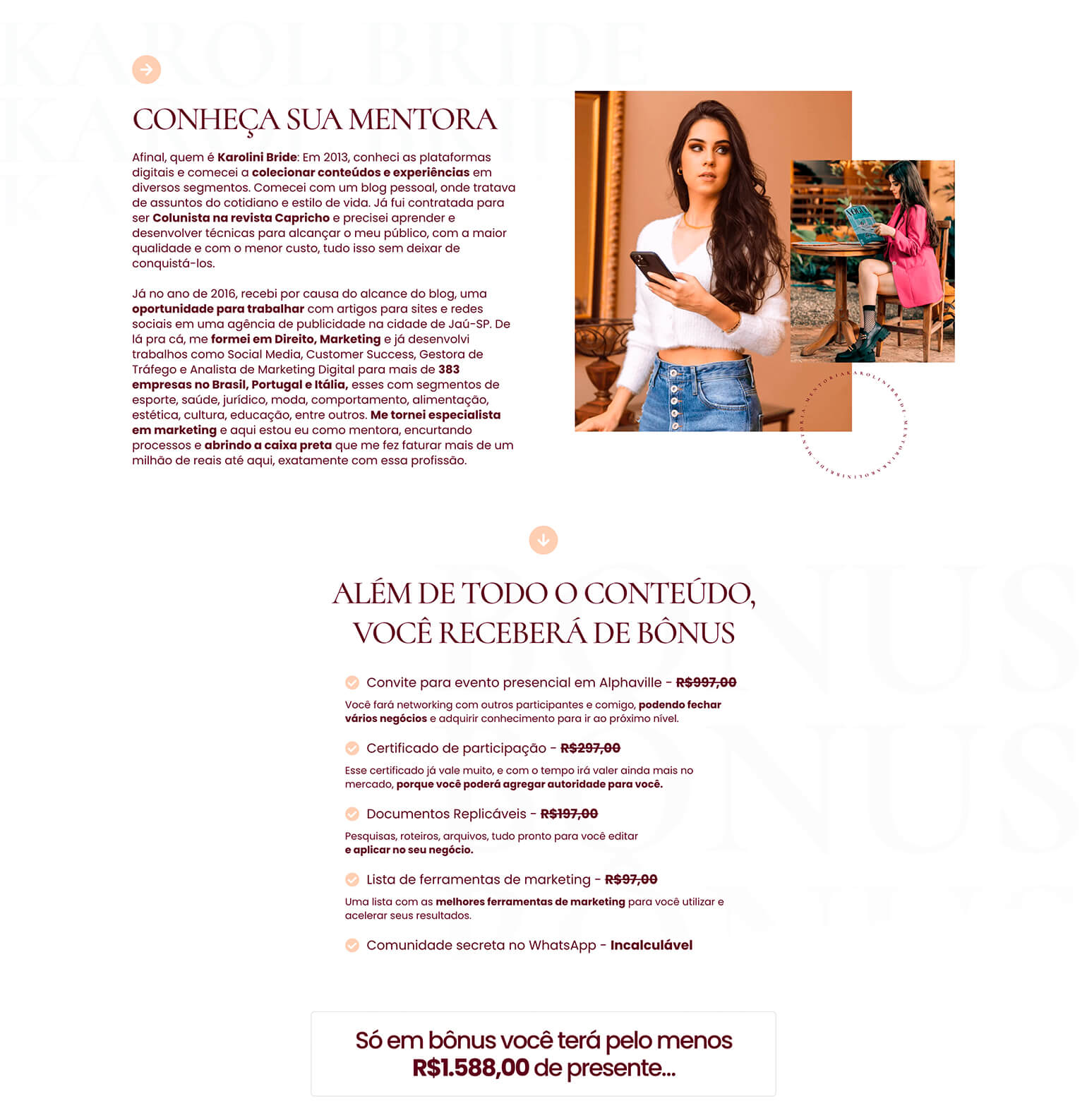 Karolini Bride: Em 2013, conheci as plataformas digitais e comecei a colecionar conteúdos e experiências em diversos segmentos. Comecei com um blog pessoal, onde tratava de assuntos do cotidiano e estilo de vida. Já fui contratada para ser Colunista na revista Capricho e precisei aprender e desenvolver técnicas para alcançar o meu público, com a maior qualidade e com o menor custo, tudo isso sem deixar de conquistá-los.