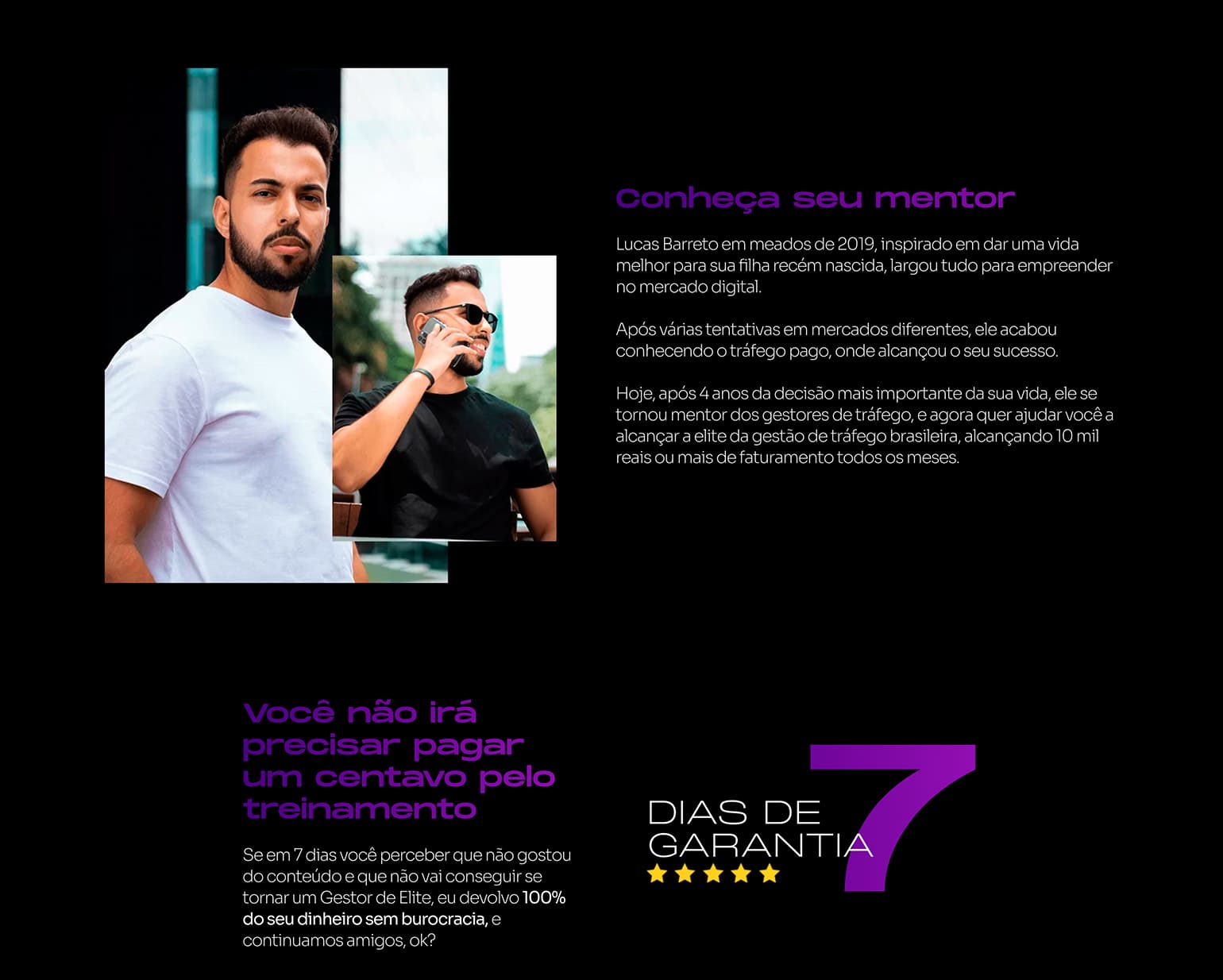 Lucas Barreto em meados de 2019, inspirado em dar uma vida melhor para sua filha recém nascida, largou tudo para empreender no mercado digital. Após várias tentativas em mercados diferentes, ele acabou conhecendo o tráfego pago, onde alcançou o seu sucesso.